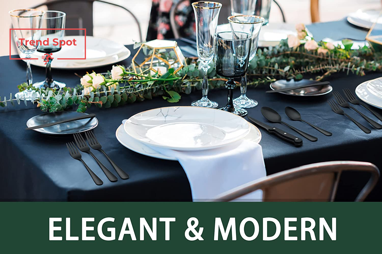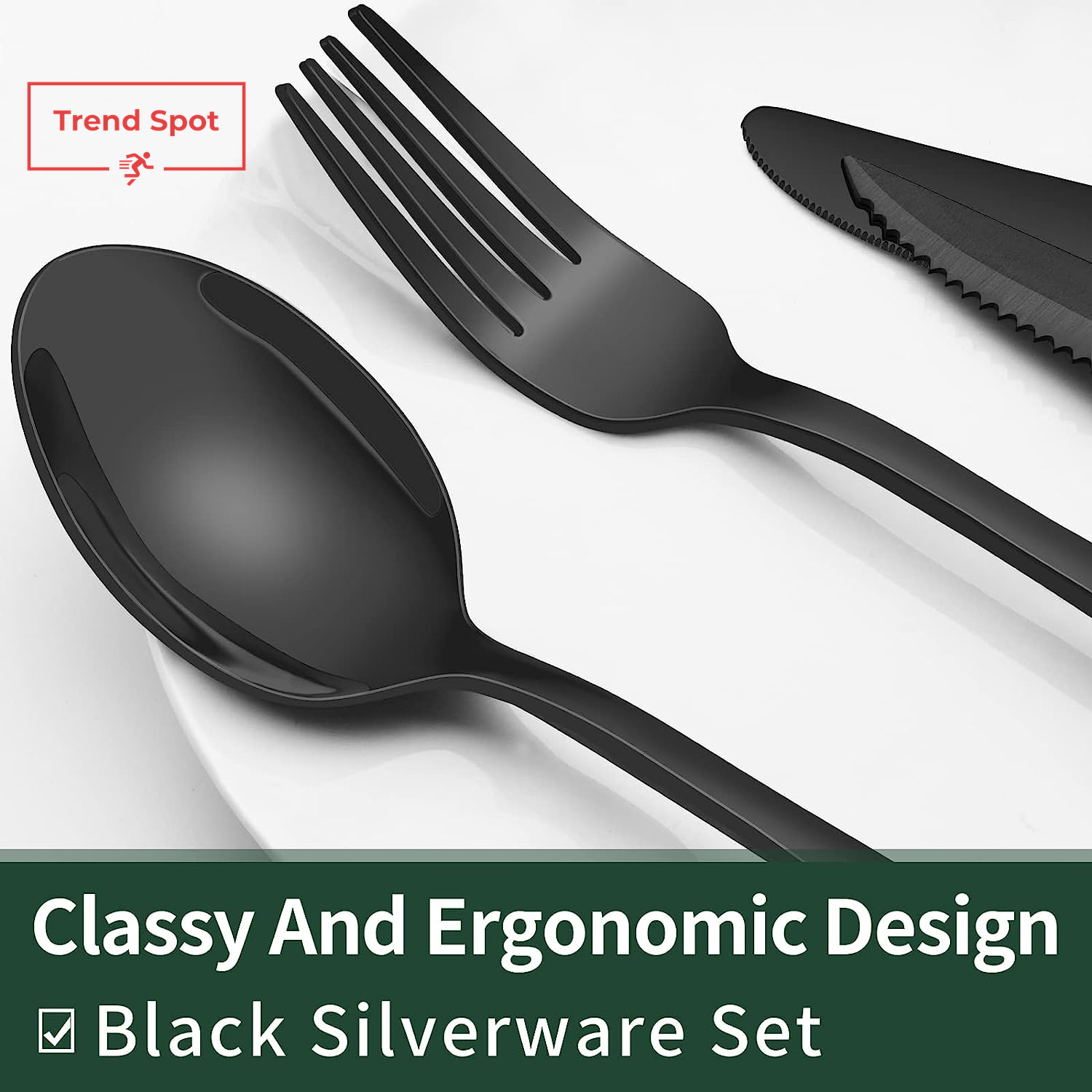 24-Piece Black Silverware Set with Steak Knives, Black Flatware Set for 4, Food-