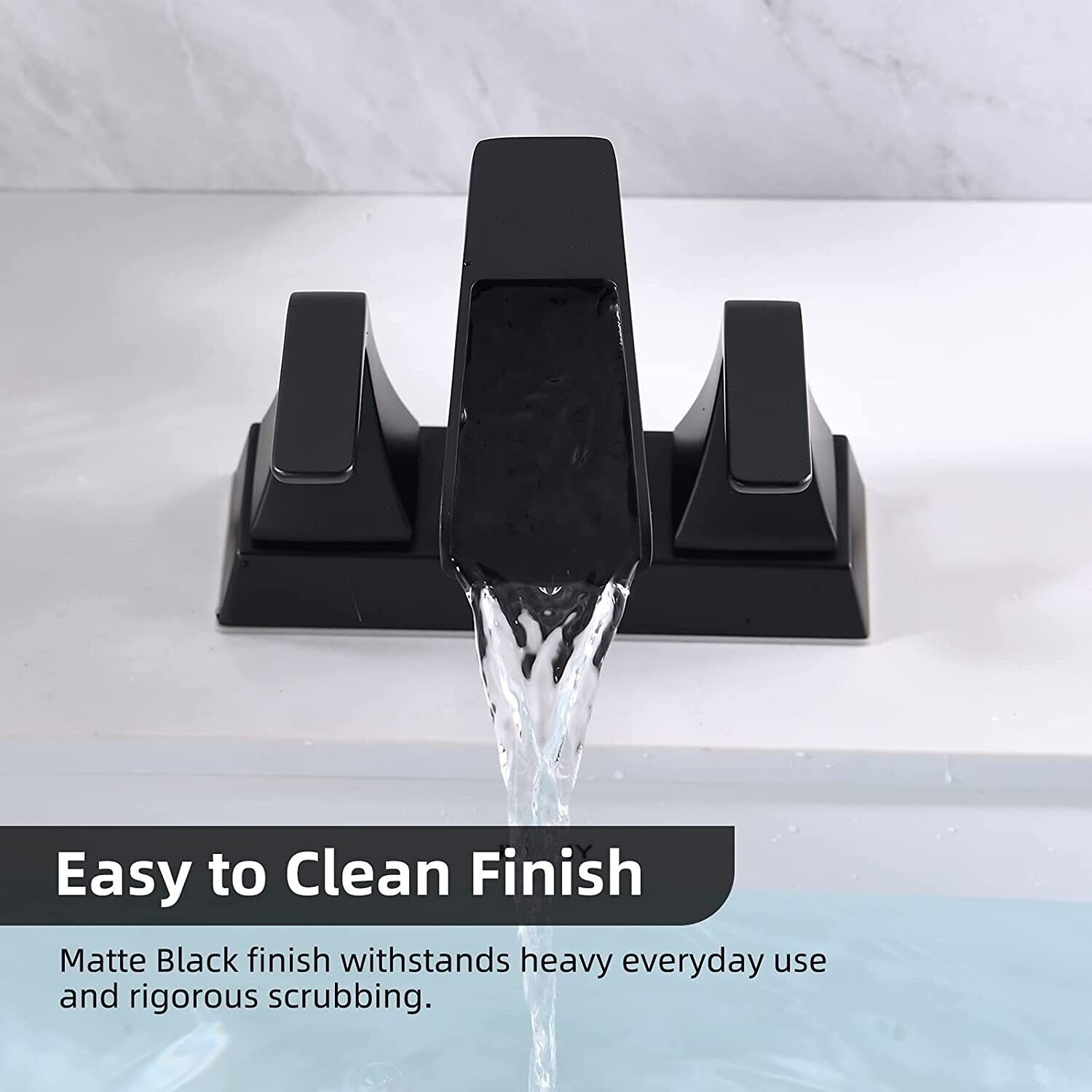 4 inch Centerset Bathroom faucet Matte Black 2-handle 3 Hole Basin Sink Mixer