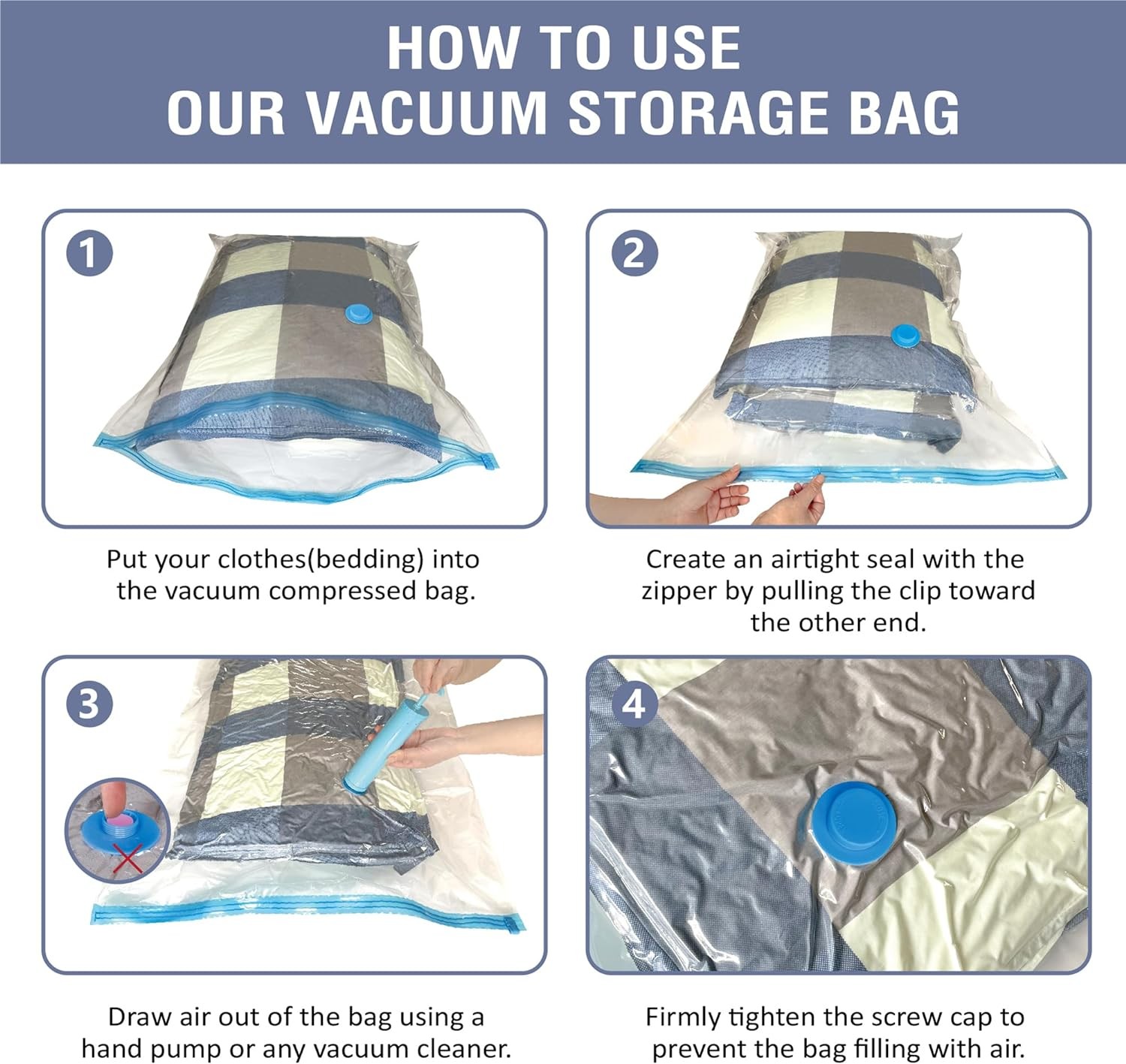Our extra jumbo vacuum storage bag combo with 4 XXL vacuum sealed storage bags is a must-have essential for saving your storage space!