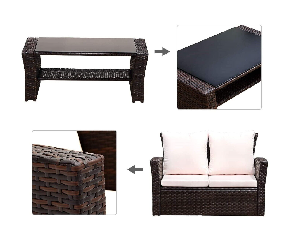 4 Piece Patio Set - Rattan Garden Furniture Table Chairs Grey Black and Brown
