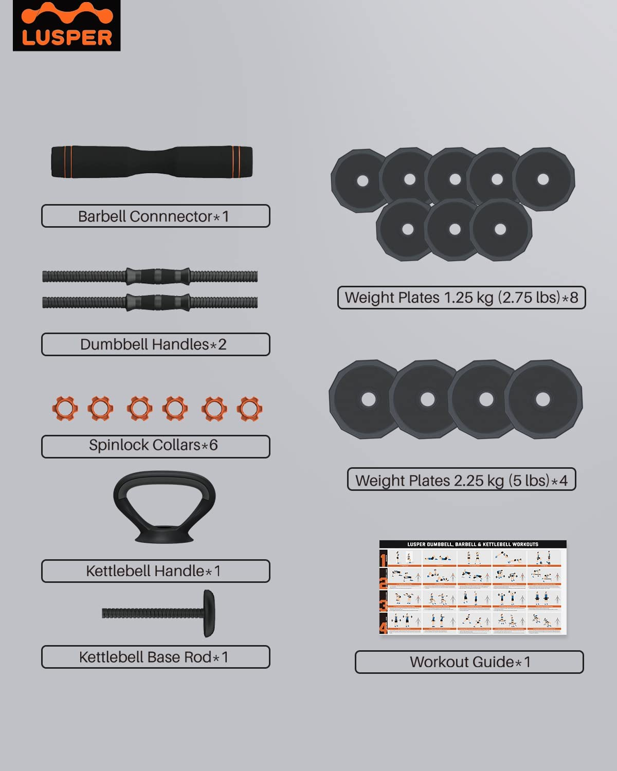 3 Functions (2 dumbbells, barbell, kettlebell)