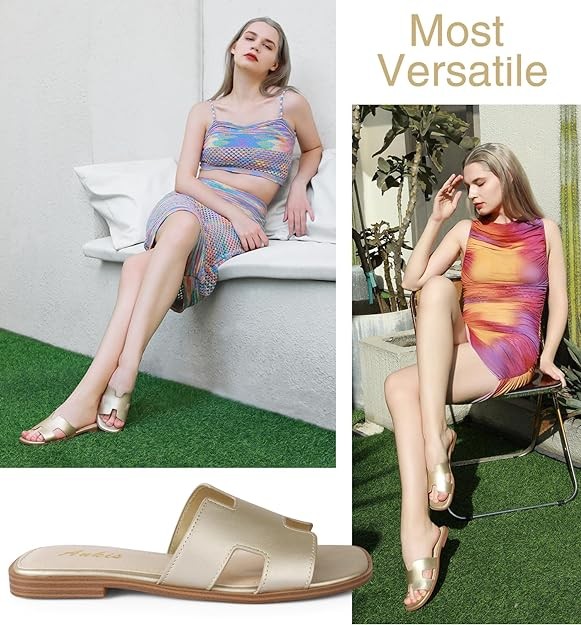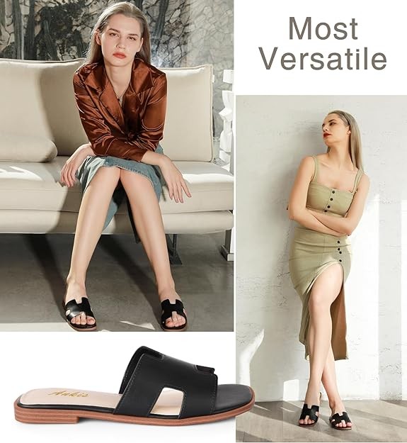 • Most Versatile, this black, brown, white, beige or gold slide sandals goes well with shorts, pants, skirs, dresses, especially casual shorts, all jeans, resort dresses, wide leg pants and so on. A Must-Have in Every Woman's Wardrobe.