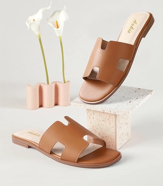 Ankis Black Brown White Biege Gold Women's Flat Sandals Comfortable Women's Slide Sandals Fashion Flat Sandals for Women Summer