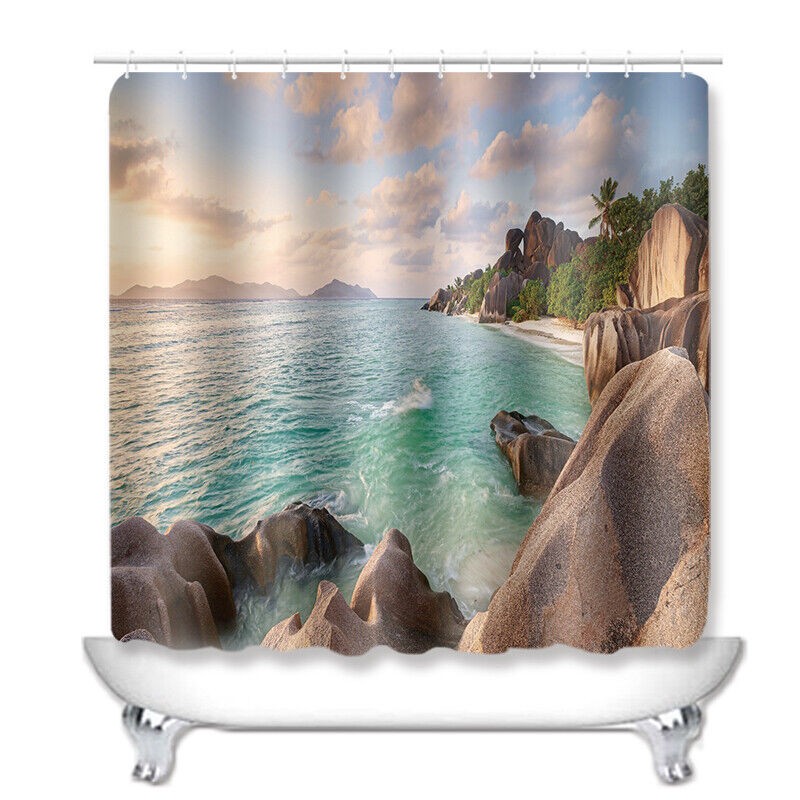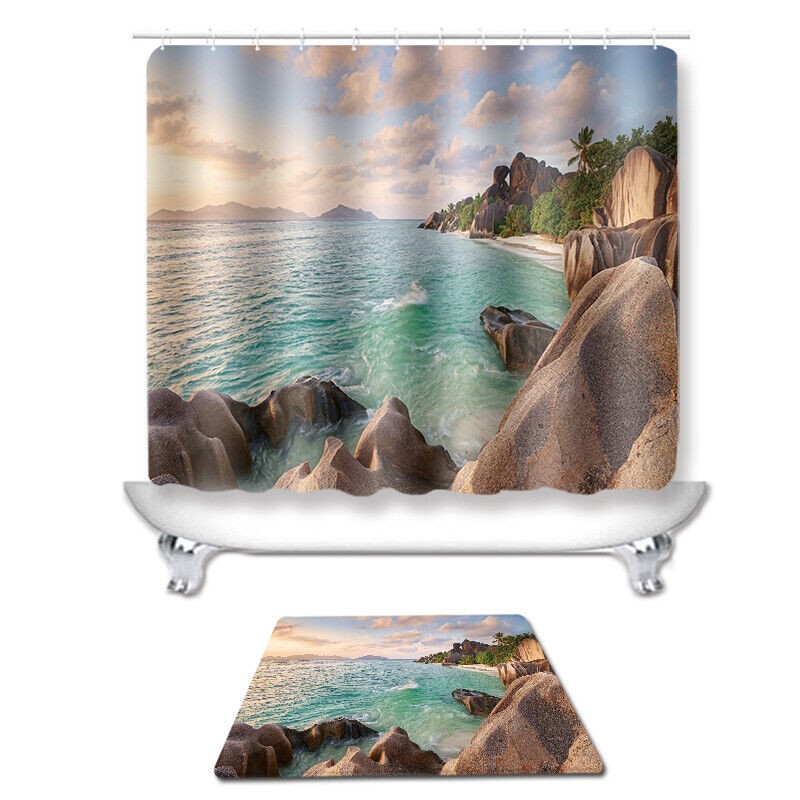 Beach 3D Printed Waterproof Shower Curtain with Rug Toilet Cover Bath Mat Set-.-