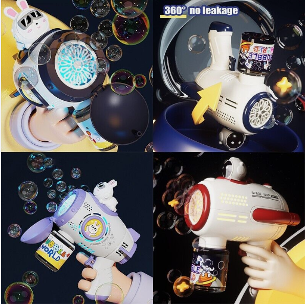 • 360°Rotatable Without Leakage - The 360-degree leak-proof design bubble gun does not leak bubble fluid leaving hands dirty or sticky. The leak-proof silicone sealing ring ensures a perfect fit with the bubble gun and bottle. 360 degrees rotatable, shoot bubbles in different directions then be surrounded by bubbles in a moment.