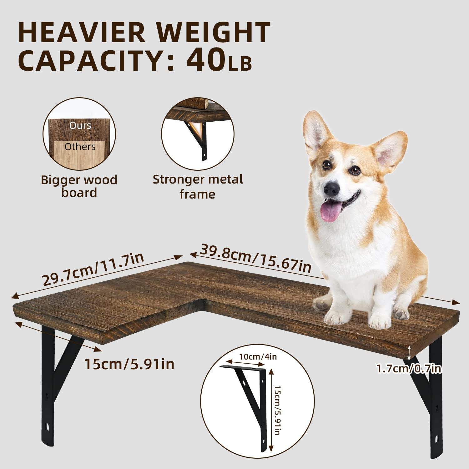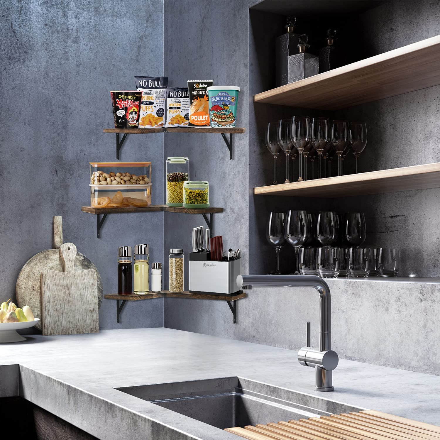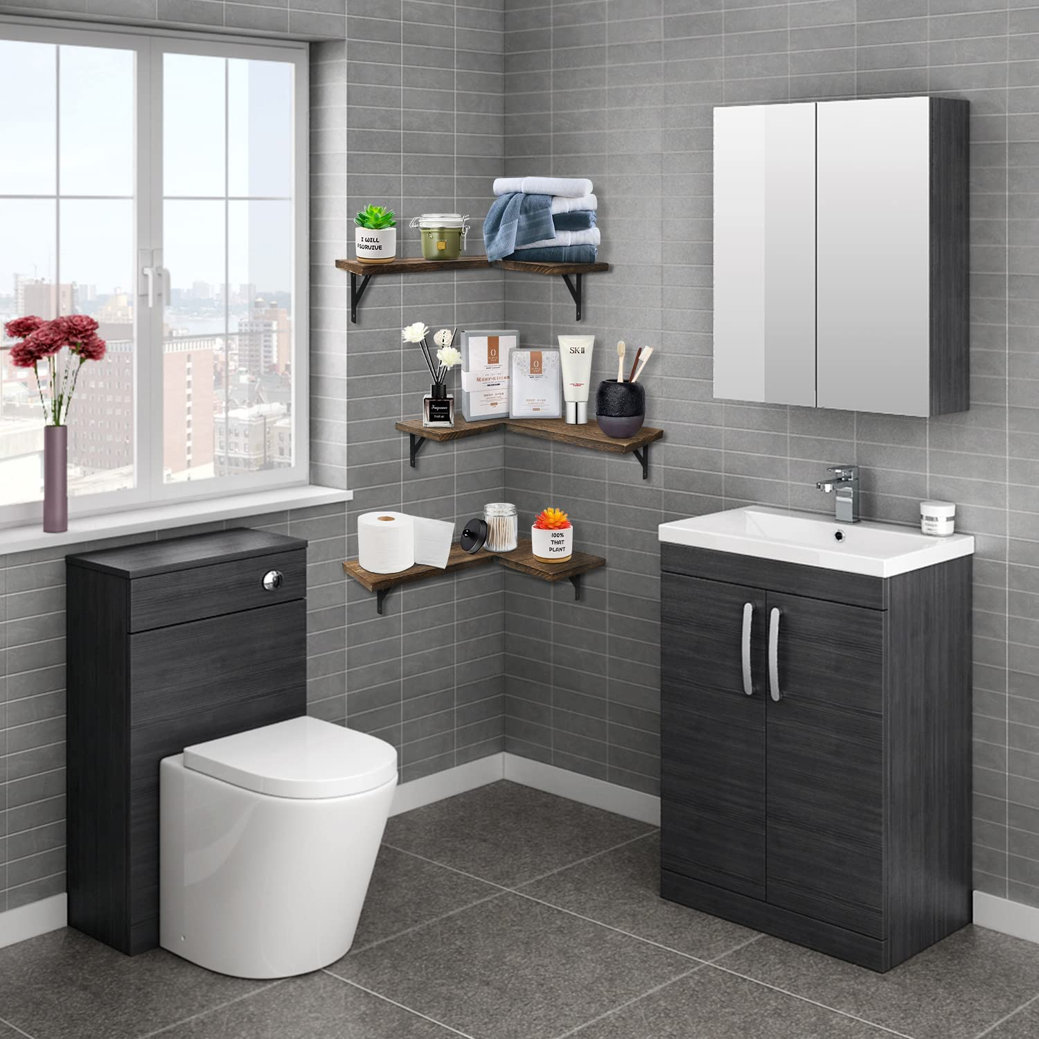 Corner Wall Floating Shelf Set of 3, Rustic Wood Wall Storage Organizer Shelves