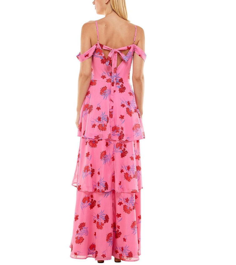 CRYSTAL DOLL WOMENS FLORAL TIERED FORMAL EVENING DRESS GOWN JUNIORS BHFO 9714